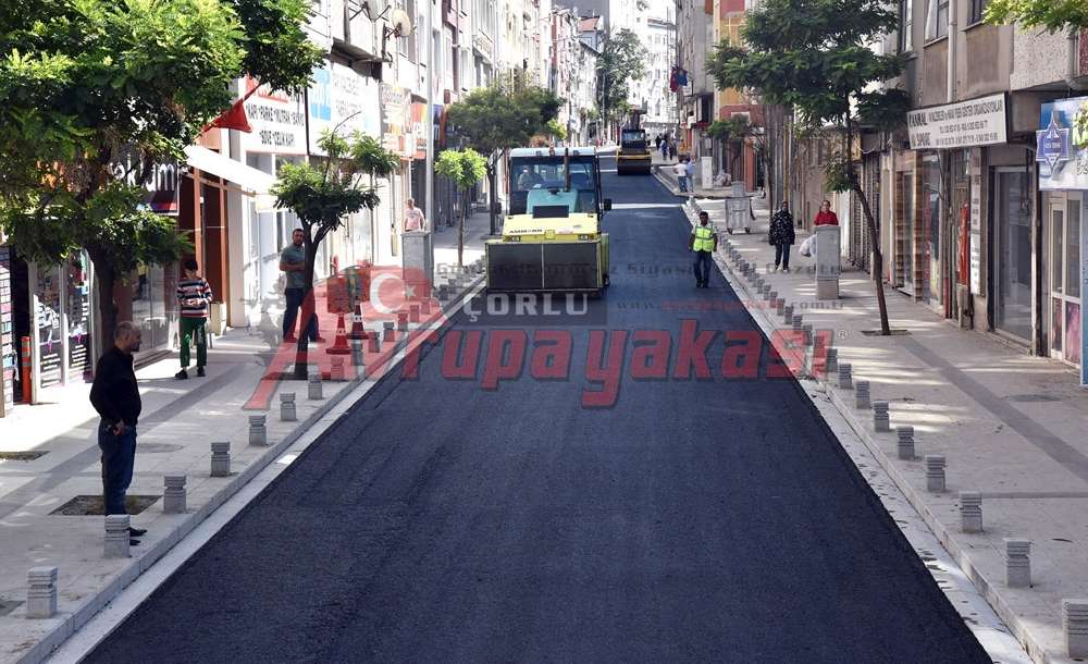 Çorlu’da Kumyol Caddesinde Çorlu Belediyesi Fen İşleri Müdürlüğü tarafından yürütülen üst yapı çalışmaları ve yağmur suyu hatlarının yer altına alınmasının ardından asfalt serimini gerçekleştirildi.